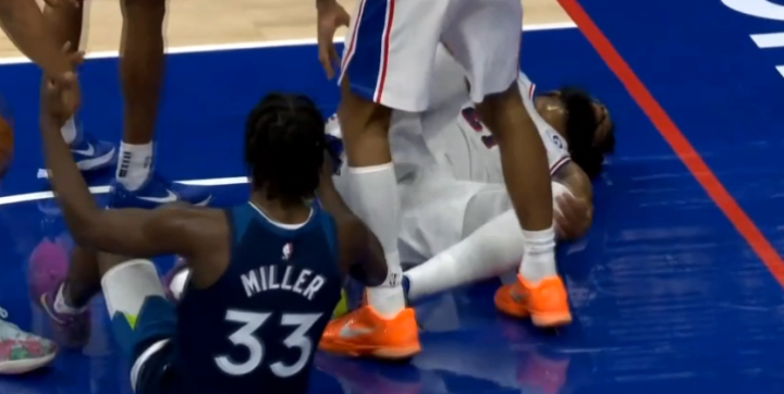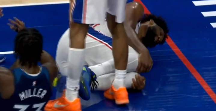 第三节恩比德再次命中三分,假动作虚晃造犯规并且两罚全中,这一节7分01秒,恩比德持球撞倒对手,自己摔倒捂着膝盖并且起身时小腿发软,如此一幕令人担忧,好在他的身体无碍,之后下场坐回替补席,就此提前打卡下班。
